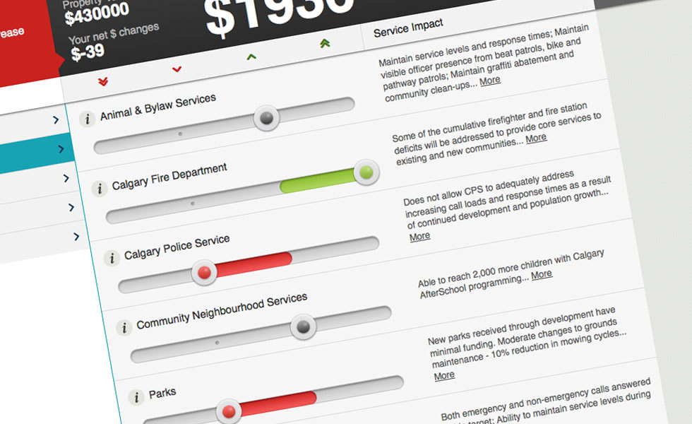 To accurately reflect the decisions facing the city, Calgary's Budget Simulator showed participants the impact of spending choices both on the overall city budget and also their own individual property tax rates.