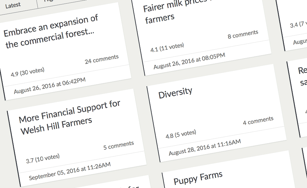 The ideas collected online were aggregated with evidence collected in other ways, and all put forward for consideration by Members of the Climate Change, Environment and Rural Affairs Committee. This process in turn helps the Committee write its report on how principles can be developed to underpin a new agriculture and rural development policy for Wales.