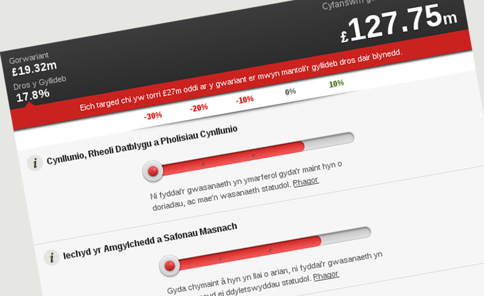 Powys County Council chose to use Simulator to provide an engaging digital response mechanism for their 2016/17 budget consultation. To facilitate the widest possible participation, Powys made their Budget Simulator available in both English and Welsh, and supported it with a broad range of promotional activity.