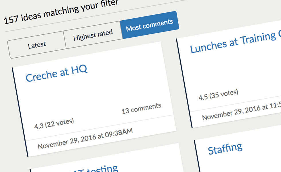They opened up a couple of challenges – one on becoming more commercial and one on efficiency – and, in less than a month, quickly racked up more than 200 ideas, 300 comments and 1,000 ratings.