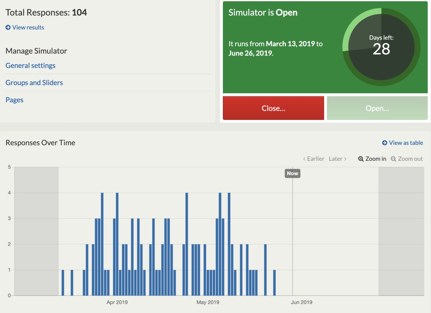 They needed a tool that would enable them to consult the public, whilst also educating them about the complex challenges and tradeoffs involved in creating options that would benefit the whole city. They opted for Simulator: a deliberative, interactive tool that helps citizens learn through the process of participation.