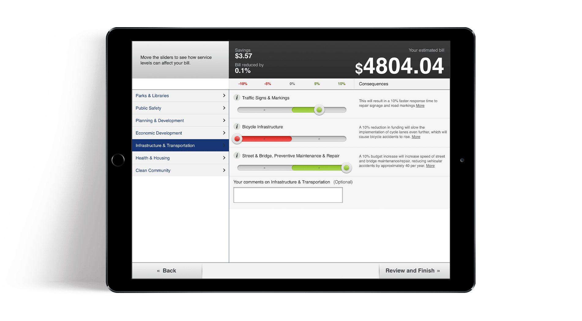 The City of Wichita, USA used a Bill Simulator to involve their citizens in setting their property tax rates.