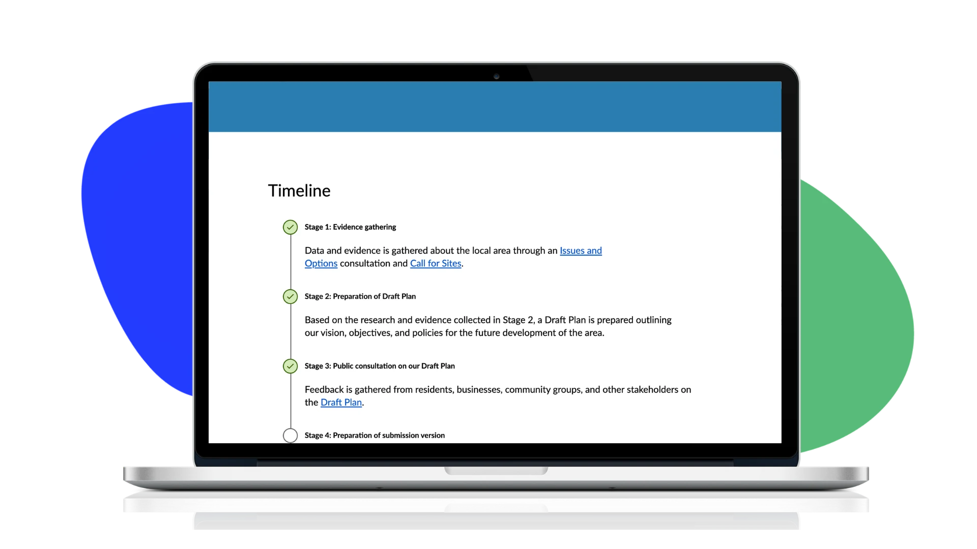 With Citizen Space, every stage of the plan sits within the same branded platform, organised under a single local plan section that residents can return to throughout the process. They can see where the plan has reached, what has already been consulted on, and what is currently open for comment. That continuity matters. A community that can follow the journey from beginning to end is more likely to stay engaged throughout, and more likely to trust the outcome when the plan is finally adopted.